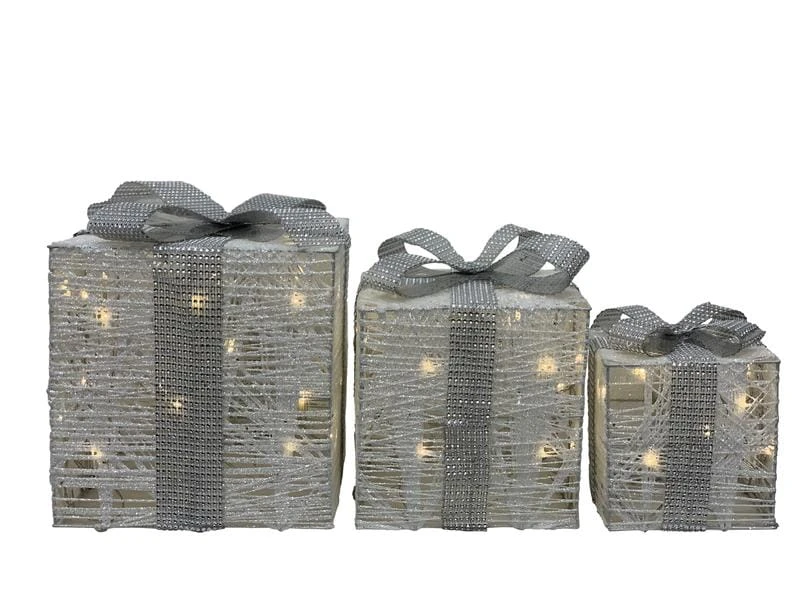 Dameco LED-Figur Geschenkboxen, 3 Stück, Silber