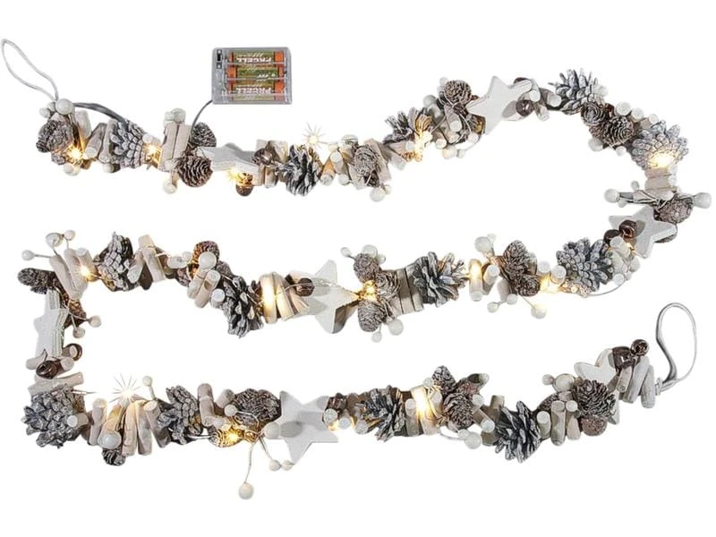 - 20 warm weisse LED Leuchten mit Tannenzapfen, Sternen und Beeren dekoriert