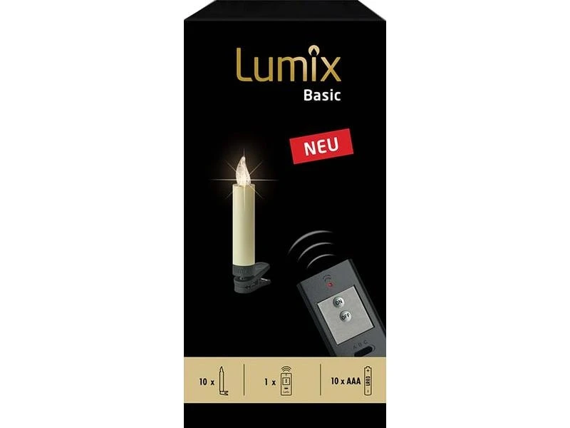 Der neue preisgünstige Marken-Einstieg in die LUMIX Familie: LUMIX Basic Mini kombiniert edles LUMIX Design und höchste Produktqualität. Dies macht LUMIX Basic Mini zum besonderen Erlebnis am Weihnachtsbaum! Verbinden Sie die magische Wirkung von Christbaumkerzen mit der Sicherheit und dem Komfort von kabelloser LED Technologie. Sie garantieren wundervolles warmweisses LED Licht und schützen Sie zu 100% vor Bränden mit echten Christbaumkerzen. LUMIX Basic Mini lassen sich bequem per Fernbedienung an- und ausschalten.