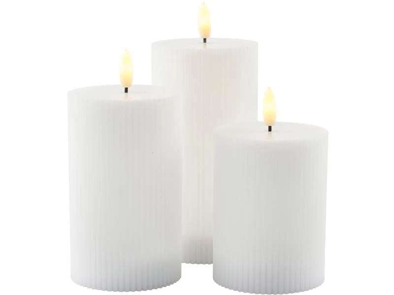 Die Smilla LED-Wachskerzen verleihen Ihrer Inneneinrichtung einen Hauch von Eleganz. Das Design besteht aus einer geriffelten Oberfläche und einer flachen Spitze, die einen frischen und modernen Look verleiht. Die Kerze verfügt über eine lebensecht flackernde
