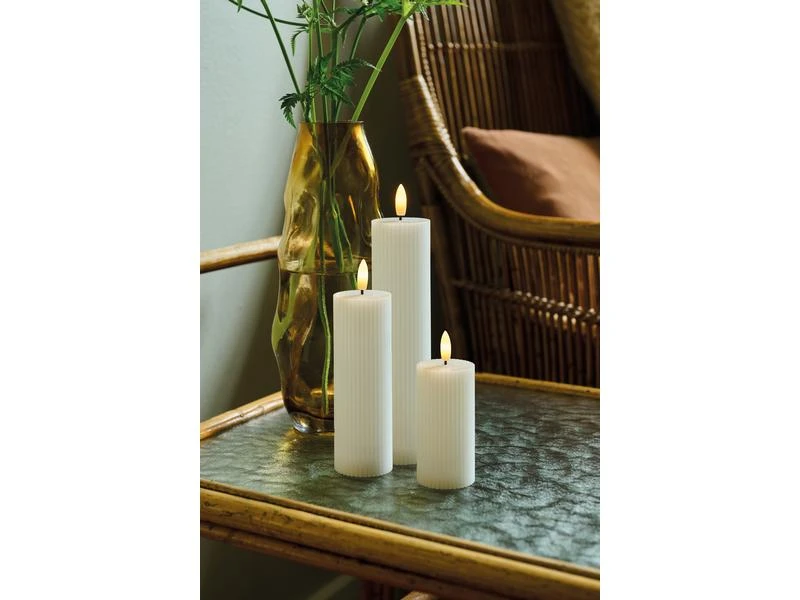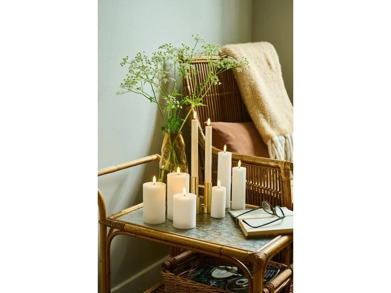 Die Smilla LED-Wachskerzen verleihen Ihrer Inneneinrichtung einen Hauch von Eleganz. Das Design besteht aus einer geriffelten Oberfläche und einer flachen Spitze, die einen frischen und modernen Look verleiht. Die Kerze verfügt über eine lebensecht flackernde