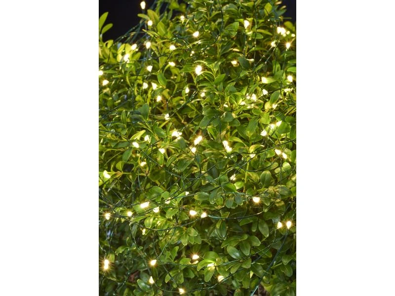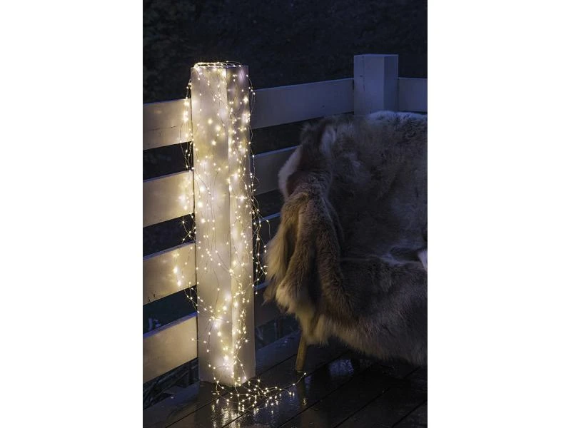 Geniessen Sie unzählige Dekorationsmöglichkeiten drinnen und draussen mit der Sirius Knirke. Ob Vasen, Pflanzen, Terrassenzaun oder Möbel – mit dieser LED-Lichterkette verpassen Sie beliebigen Gegenständen das ganze Jahr über ein ganz besonderes Flair. Sie setzt sich aus 350 weissen Lämpchen verteilt auf 15 Stränge à 2.7 m zusammen. Sie ist netzbetrieben und verfügt zu diesem Zweck über eine Zuleitung von 5 m. Das benötigte Netzteil ist im Lieferumfang enthalten.