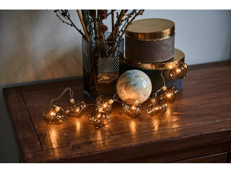 Millie ist ein sorgfältig mundgeblasener Glasschmuck. Die zarten Ornamente sind eine Kombination aus einer organischen Form und einer klassischen Girlande in einem. Diese stilvolle Dekoration kann individuell eingesetzt werden, um eine raffinierte und gemütliche Atmosphäre zu schaffen.