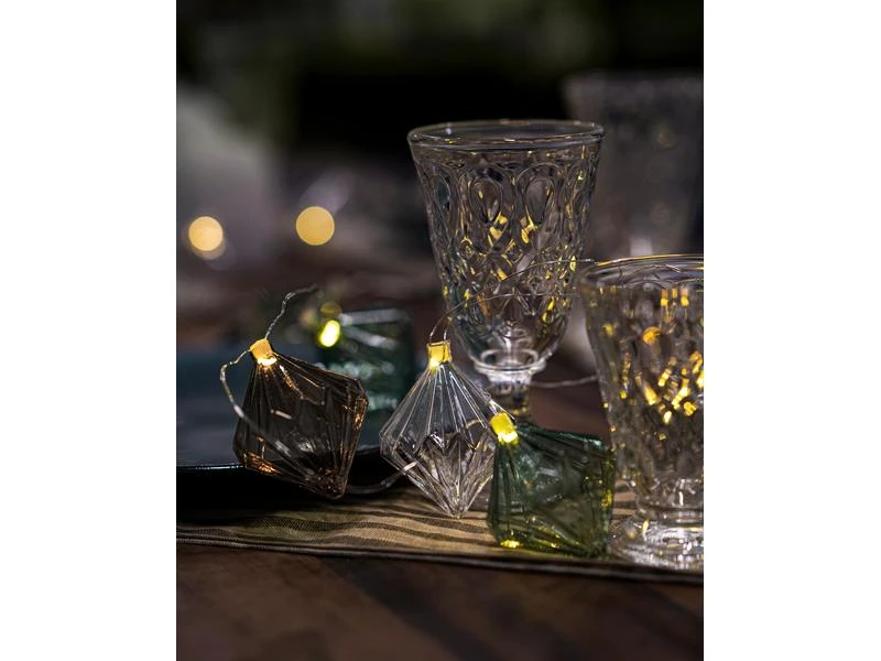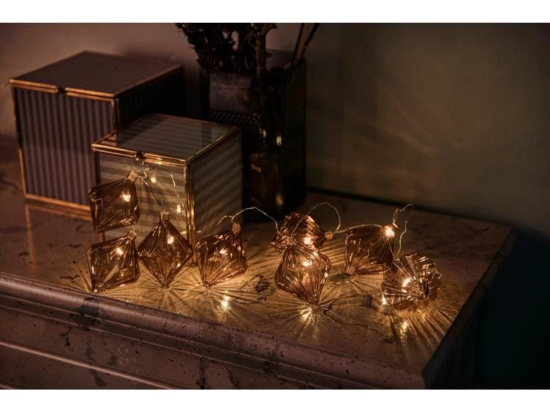 Nellie ist ein sorgfältig mundgeblasener Glasschmuck. Die zarten Ornamente sind eine Kombination aus einer geometrischen Form und einer klassischen Girlande in einem. Diese stilvolle Dekoration kann individuell eingesetzt werden, um eine raffinierte und gemütliche Atmosphäre zu schaffen.