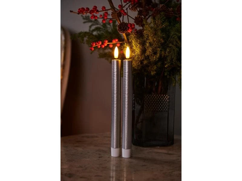 Sirius LED-Stabkerzen Set Sille Ø 2 x 25 cm, Silber, 2 Stk.