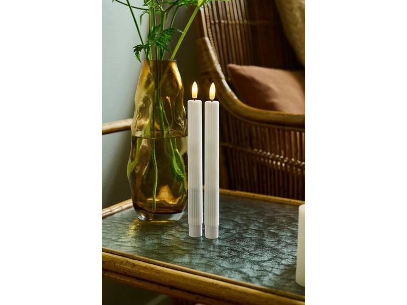 Die Smilla LED-Wachskerzen verleihen Ihrer Inneneinrichtung einen Hauch von Eleganz. Das Design besteht aus einer geriffelten Oberfläche und einer flachen Spitze, die einen frischen und modernen Look verleiht. Die Kerze verfügt über eine lebensecht flackernde