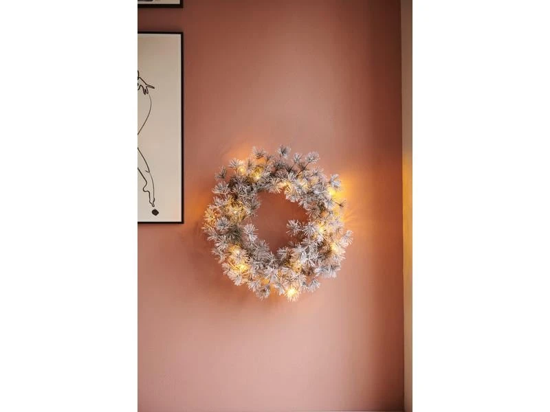 - LED-Kranz für die Haustür, die Wand oder als Tischdekoration in Grün mit Schnee