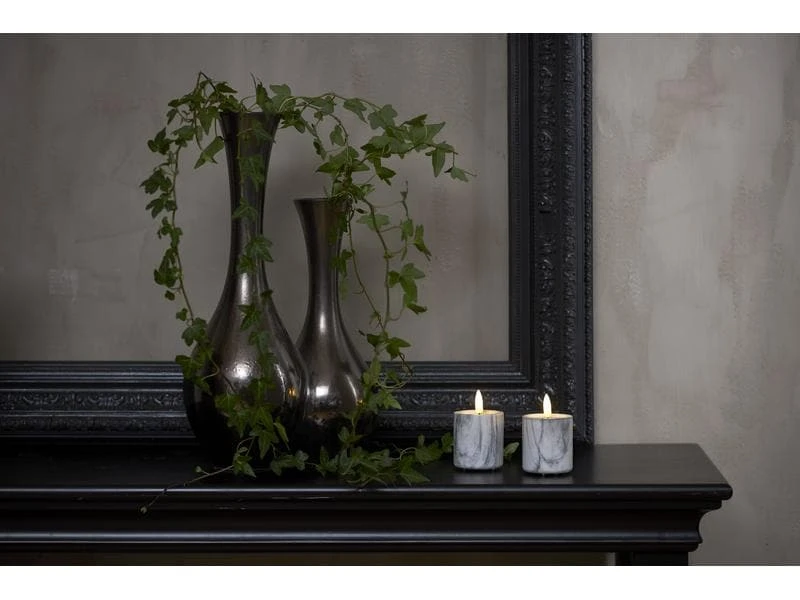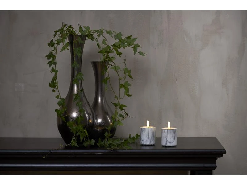 Star Trading LED-Kerze Pillar Flamme Marble Ø 5.5 x 9 cm, Grau, 2 Stk
