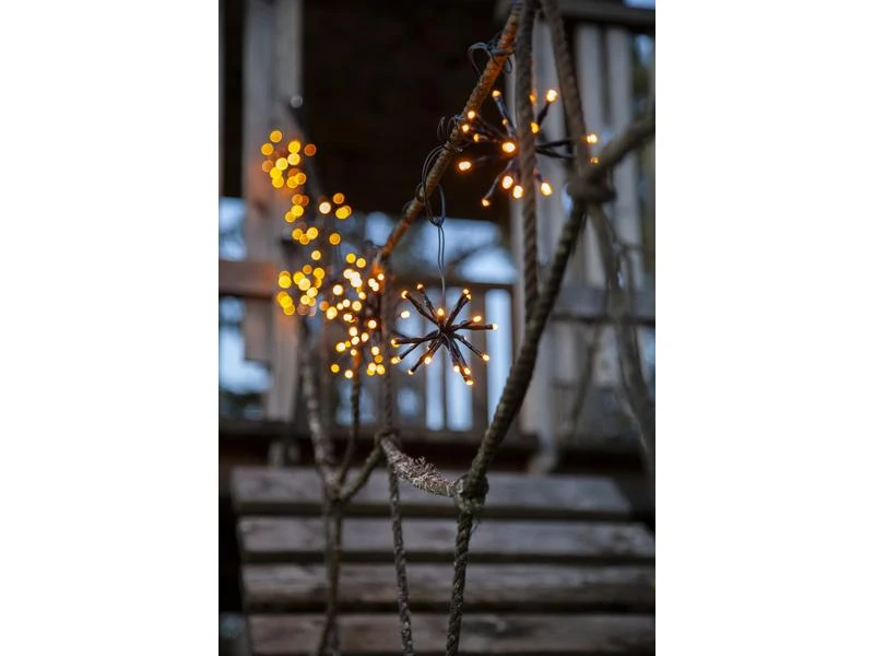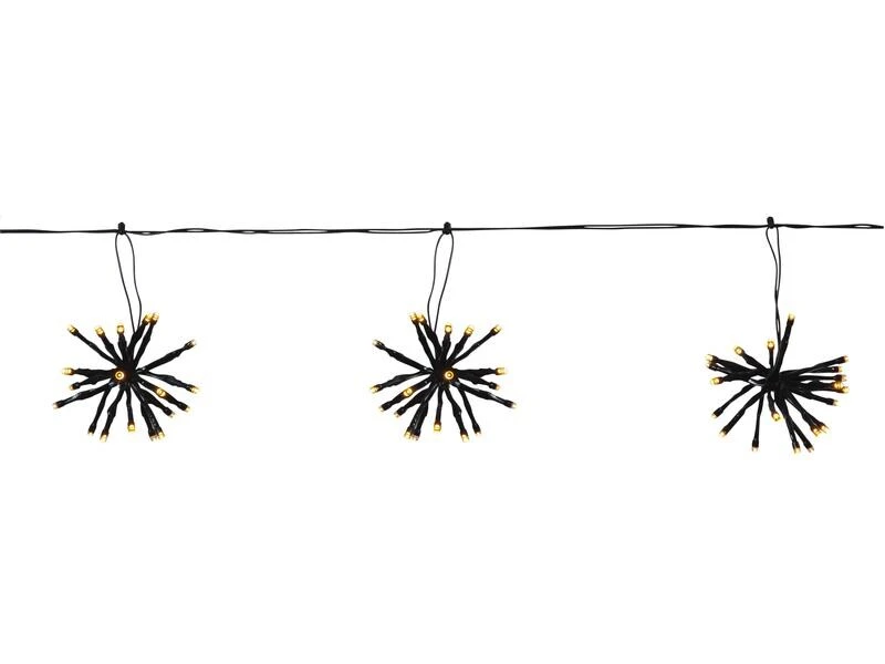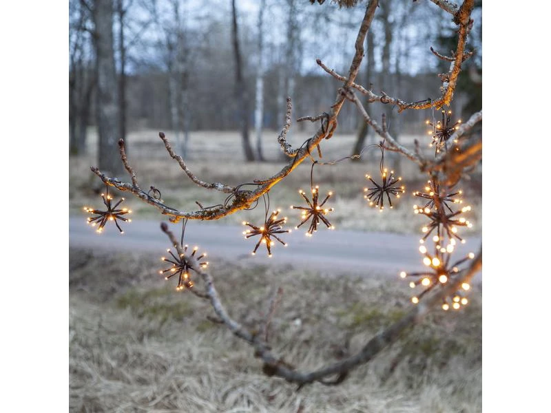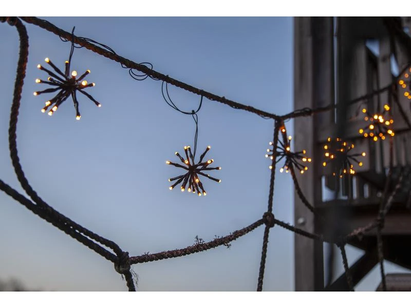 Hübsche Lichterkette mit 10 Stangen mit jeweils 20 warmweissen LED. Dekorieren Sie Ihren Garten oder Ihre Terrasse für einen schönen Glanz. Schwarzes Kabel und IP44-Adapter.
