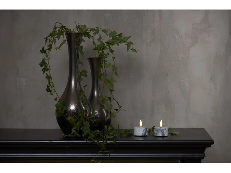 Star Trading LED Teelichter Set Flame Marble Ø 5.5 x 6 cm, Grau, 2 Stk