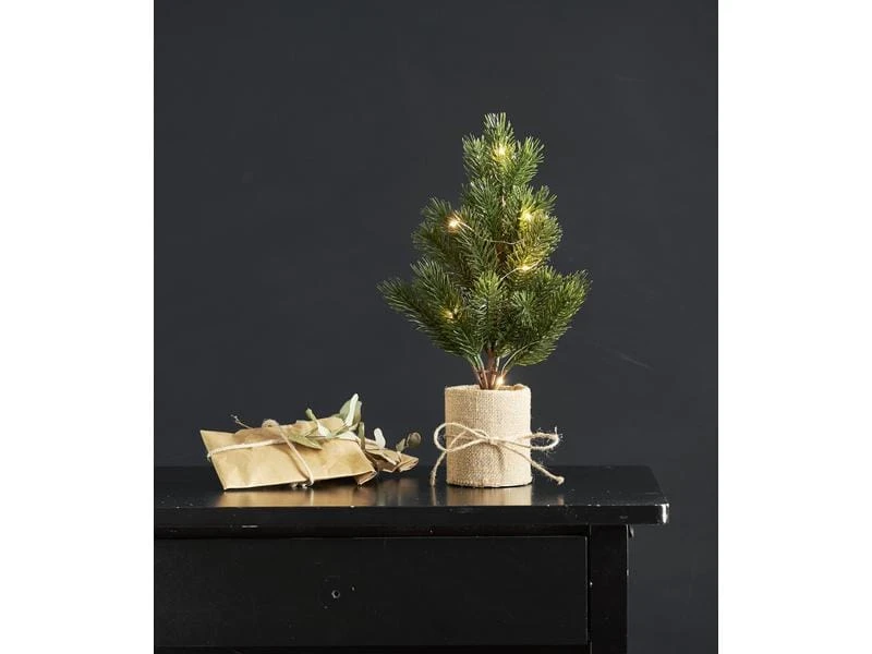 Tischbaum aus Voll-PE-Material, mit dem man schön dekorieren kann. Leuchtet mit 8 warmweissen Tautropfen. Wird mit 2 x AA-Batterien betrieben und verfügt über einen eingebauten Timer. Batterien sind nicht enthalten.