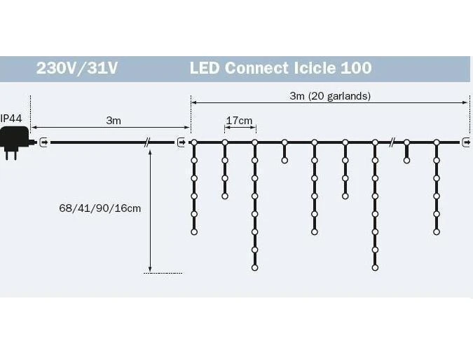 Wollen Sie nicht warten bis die Eiszapfen von alleine wachsen? Diese Kette verschönert Ihre Dachkanten mit funkelnden Ersatzzapfen. Ausserdem sind diese Eiszapfen im Gegensatz zu den echten ungefährlich. Dank der LED-Technologie verbraucht die Kette wenig Strom und hält lange.